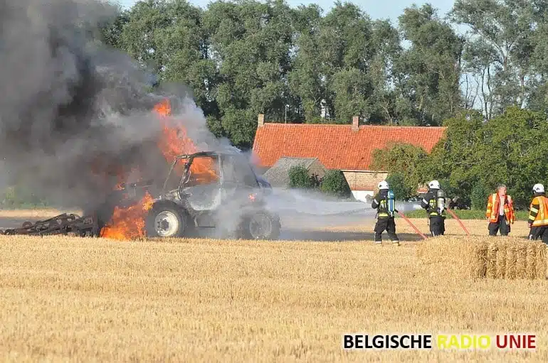 Landbouwmachine gaat in vlammen op in Diksmuide