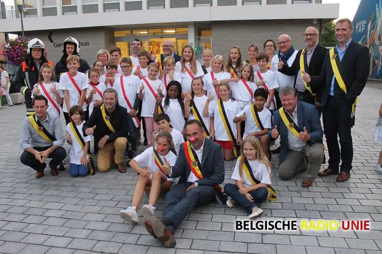 bru-16-17-2kopie Vrijdag 23 september is in Kuurne de nieuwe Kindergemeenteraad geïnstalleerd. Na een spannende stemronde die doorging in het jeugdcentrum en waarbij alle zesdeklassers hun stem uitbrachten was het vervolgens even nagelbijten wie de nieuwe kinderburgemeester zou gaan worden. Nadat alle verkozen kindergemeenteraadsleden gekend waren volgde vervolgens in het Oud Gemeentehuis een geheime zitting die geleid werd door burgemeester Francis Benoit en waarop alle schepenen en uiteraard de nieuwe kinderburgemeester werd verkozen. Later op de avond volgde dan in de raadzaal van het Gemeentehuis een grote verkiezingsshow waarop het nieuwe kindergemeentebestuur werd voorgesteld. Tijdens deze show – stijlvol gepresenteerd door ‘brandweermannen’ Jan en Martin – werden aan het grote publiek de kindergemeenteraadsleden, kinderschepenen en kinderburgemeester onthuld en werd uiteraard door hen plechtig de eed afgelegd.  Kinderburgemeester Elle Engels die leerlinge is van de Centrumschool is alvast in de wolken dat zij een jaar lang kinderburgemeester van Kuurne mag zijn. Haar eerste officiële opdracht zal alvast niet lang op zich laten wachten gezien volgende week de Ezelsfeesten reeds op het programma staan.