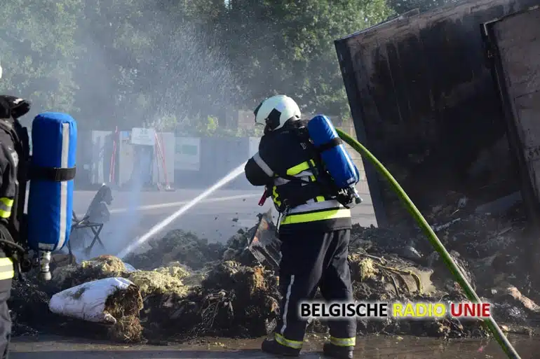 Vrijdagnamiddag ontstond door de hitte brand op een landbouwbedrijf langs de Lokerseweg in Heuvelland. Een mesthoop met daarachter een stapel brandhout hadden er door de