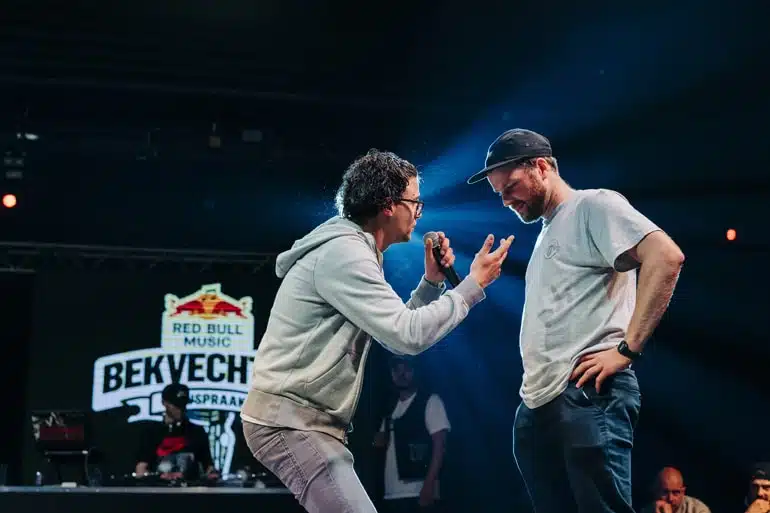 000 Redbull Bekvechten_0204 Op zaterdag 30 mei 2020 – tijdens Two Days Of Street Culture aan de Skatebowl te Kortrijk – kronen Red Bull en het Kortrijkse De Stroate de beste freestyle rapper van Vlaanderen.  Tijdens de vierde editie van Red Bull Bekvechten Battle die dit jaar neerstrijkt in Kortrijk gaan de beste freestyle rappers van Vlaanderen hard tegen hard. Met enkel een microfoon en een beat om zich te verdedigen, vertegenwoordigen de finalisten hun stad en crew in een reeks rauwe één-tegen-één battles. De slimme woordspelingen, verrassende improvisaties en verbale klappen worden beoordeeld door drie juryleden met jaren ervaring in de scene.   “We zijn erg opgetogen om mee onze schouders onder Red Bull Bekvechten te zetten,” zegt Tomas Vanderbeke, oprichter van De Stroate. “Hiphop leeft in Kortrijk, en dat bewijzen we al 5 jaar met Two Days Of Street Culture. Freestyle rap – en zeker in het Nederlands – past perfect op onze affiche. Red Bull Bekvechten bouwde met zijn drie voorbije edities al een stevige reputatie op, en we verwachten echt de beste MC’s van Vlaanderen in Kortrijk. Laat maar komen!”  De place to be? De skatebowl in Kortrijk, tijdens de Two Days Of Street Culture van het Kortrijkse De Stroate. Inschrijven kan – net zoals de vorige keren – door een video met je freestyle skills naar de Facebook page van Red Bull Bekvechten te sturen. Dat kan tot en met vrijdag 3 april 2020. De jury kiest daarna 16 finalisten om elkaar het verbale vuur aan de schenen te leggen. 000 Redbull Bekvechten_0121