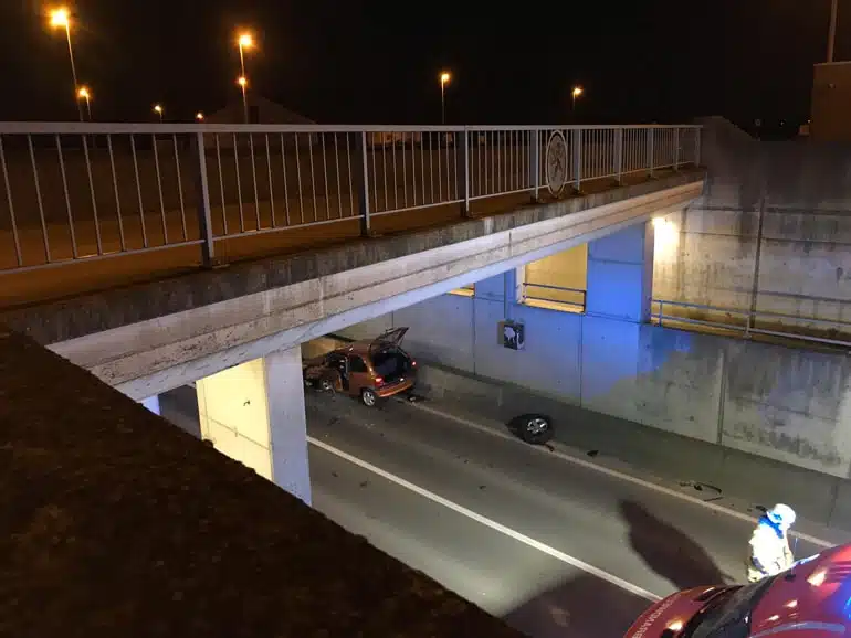 000 Roeselare VKO1 In de nacht van zaterdag op zondag zijn langs de Heirweg in Roeselare twee zwaargewonden gevallen bij een zwaar ongeval die zich voordeed onder de brug van de R32.  Het was omstreeks 00.45 uur dat een Opel Corsa die in de richting van Lichtervelde reed er frontaal werd gegrepen door een Jeep Grand Cherokee. De inzittenden van de Opel Corsa, een jong koppel uit Ardooie, raakten daarbij zwaargewond en diende door een ambulance te worden overgebracht naar het ziekenhuis. De 45-jarige bestuurder van het andere voertuig bleek echter te diep in het glas te hebben gekeken en legde een positieve alcoholtest af, waardoor het rijbewijs van de bestuurder onmiddellijk in beslag werd genomen.  Door het ongeval werd de Heirweg enkele uren volledig afgesloten voor het verkeer. 000 Roeselare VKO2