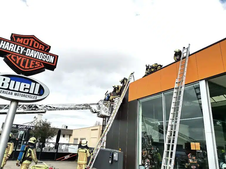 Dakbrand bij Harley Davidson winkel te Roeselare