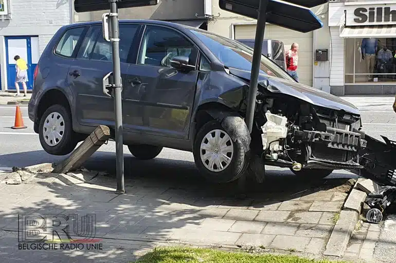 In de IJzerlaan te Diksmuide reed donderdagvoormiddag een bestuurder met zijn personenwagen Volkswagen Touran weg uit zijn parkeerplaats en hapert daarbij aan de achterkant aan een ander geparkeerd voertuig. Wat verder in de straat wil hij terugdraaien en tijdens dit maneuver raakt hij een houten paal en enkele verkeersborden op het voetpad. De bestuurder kon geen zinvolle uitleg geven over wat er precies was gebeurd. Hij is niet gewond maar werd ter controle overgebracht naar het ziekenhuis van Veurne.