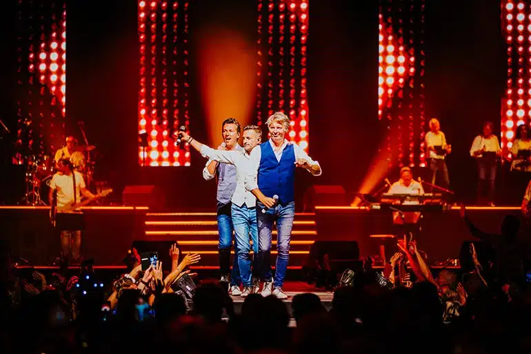 Dat De Romeo’s echte sfeermakers zijn, hoeft niet uitgelegd te worden, maar ook als gastheren weten ze exact hoe het publiek in te pakken. Met hier en daar een grappige kwinkslag vervulden de drie charmante heren probleemloos hun rol als driekoppige presentator. Natuurlijk blijven ze in de eerste plaats vaste zangwaarden en daarom kregen ze de gepaste eer Het Schlagerfestival Zomereditie af te sluiten. Hun nieuwste single ‘Echte Vrienden’ is overigens bij het publiek al goed gekend zo blijkt, maar het befaamde ‘Viva de Romeo’s’ blijft toch de absolute topknaller. Niet alleen voor de show ontstonden spontaan polonaises, ook tijdens het festival veranderde een groot deel van de zaal in een massale mensentrein. De meest iconische Schlagerdansmove ontstond niet enkel traditiegewijs tijdens ‘Het is weer tijd voor de Polonaise’ van Christoff, maar zelfs vroeg op de avond, tijdens ‘Dans Je De Hele Nacht Met Mij’ van Laura Lynn, stak hier en daar al een vrolijke polonaise de kop op. De zwaaiende handen, een andere typische Schlagertraditie, konden natuurlijk ook niet ontbreken. De aanwezige feestbeesten swingden er gretig op los tijdens Yves Segers’ ‘Waar Zijn Die Handjes’ en Bart Kaëll’s ‘Zeil Je Voor Het Eerst’. Het feestje werd verder op niveau gebracht door energiebom SWOOP, de charmante Lindsay, romantisch duo Sasha & Davy en de immer enthousiaste Johan Veugelers.