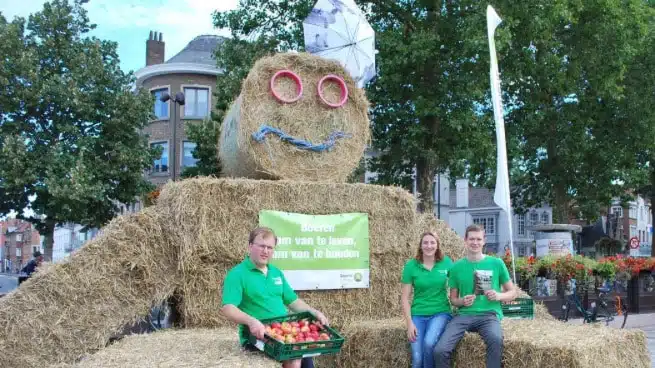 Om de actie in de kijker te zetten, zullen er op zaterdag 19 augustus ook stropoppen te bewonderen zijn op ’t Zand in Brugge, het Kolonel Dusartplein in Hasselt, het Martelarenplein in Leuven en de Kouter in Gent. Jonge boeren zetten er een stropop op, delen appels uit en leggen met plezier uit waarom het platteland nu zo mooi is.