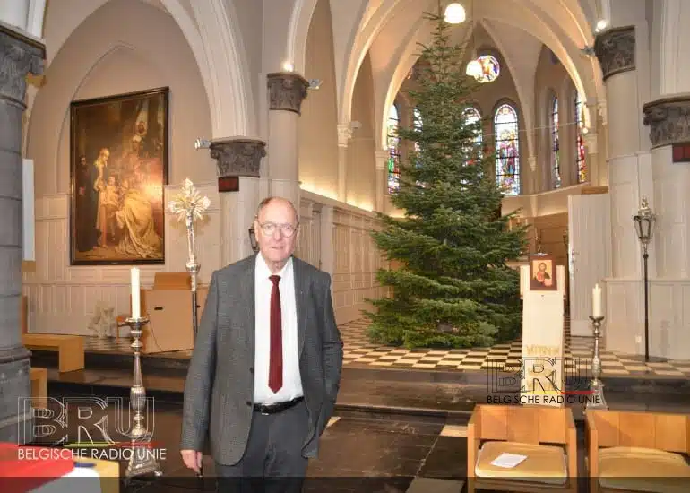 KUURNE – Voor het eerst staat er achter het altaar in de Sint-Michielskerk een echte kerstboom. Deze zeven meter hoge boom, met een winkelwaarde van 300 euro, komt uit de tuin van Lieven Verhaeghe. Hij heeft de boom vorige week gedoneerd aan de kerkfabriek als kerstdecoratie om deze in de Sint-Michielskerk te plaatsen.