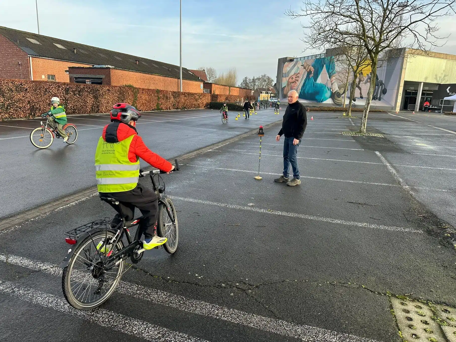 Nog tot en met donderdag hebben de leerlingen de mogelijkheid om hun fietsbehendigheid te testen op de parkeerplaats van zaal Kubox, wat tevens de bijdrage van Fietsbieb ’t schoon Velootje is aan Santo Asino.