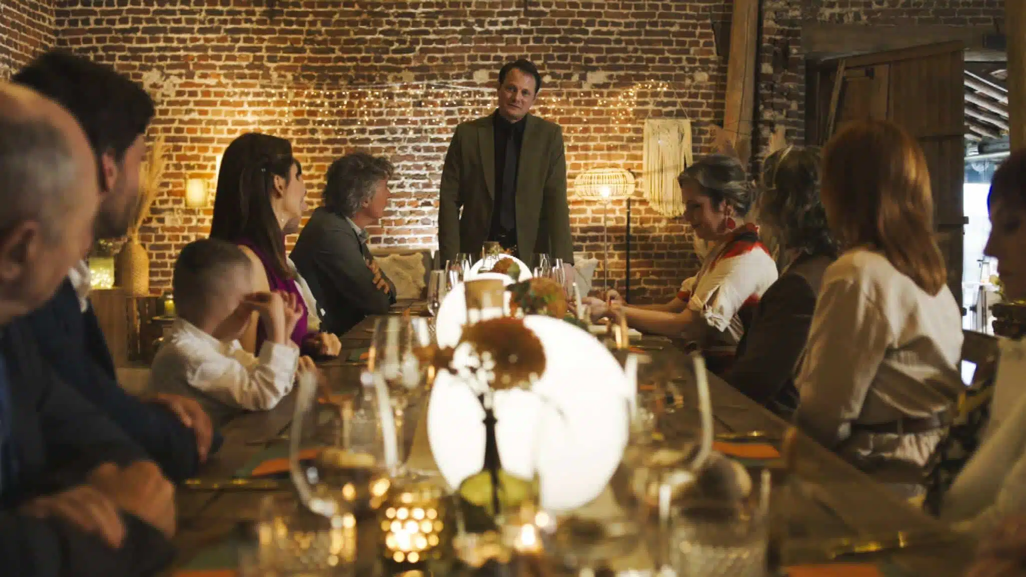 Wim Feyaerts, creative producer Familie: “De cliffhanger van deze seizoensfinale gaat de geschiedenisboeken in. Het is de eerste keer dat Familie het seizoen afsluit met een flashforward naar een verhaal dat zich binnen 6 maanden afspeelt, in de midseizoensfinale van 2025. Hoewel Joris er niet in geslaagd is zijn duivelse plan uit te voeren, lijkt het gevaar nog niet geweken. Het beeld wordt zwart, maar dan volgt er een verrassende en unieke vooruitblik naar wat komen gaat, en dat met een exacte datum: 3 januari. In deze flashforward zien we een apocalyptisch beeld van een mogelijke explosie, waarbij Mieke, gehuld in een bebloed trouwkleed, neerstuikt. Dit beeld zal ongetwijfeld nog meer vragen oproepen bij onze kijkers. Wat betekent deze explosieve vooruitblik? Zal Joris zijn plan alsnog weten uit te voeren? En welke rol spelen Mieke en de familie in dit alles? De antwoorden op deze brandende vragen worden begin januari onthuld.”