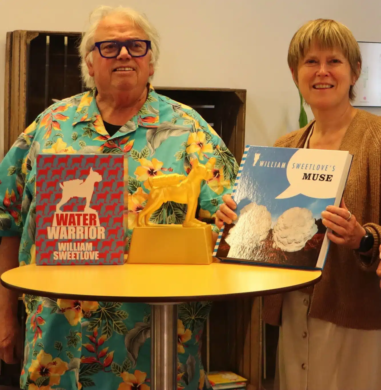 Sweetlove ‘in person’ kwam de prijs overhandigen. “De ‘Water Warrior’ klaagt eigenlijk de grote waterproblematiek aan. Ik houd mijn hart vast, maar ik vrees dat water in de toekomst een wapen wordt. Zeker in Afrika is er steeds meer waterschaarste. En als het bij ons regent, kunnen we het niet genoeg vasthouden, want alles is te zeer verhard. Die grote maatschappijproblemen zijn de rode draad in mijn werk. En daar krijg ik internationale erkenning voor. Ik ben net terug uit Slovenië om een grote openluchttentoonstelling af te ronden. En ook voor volgende zomer heb ik nieuwe plannen in de kerk van Leffinge. Veel kan ik er niet over kwijt, maar ik ga waarschijnlijk samenwerken met een aantal andere beeldende kunstenaars. Houd het maar in ’t oog.”