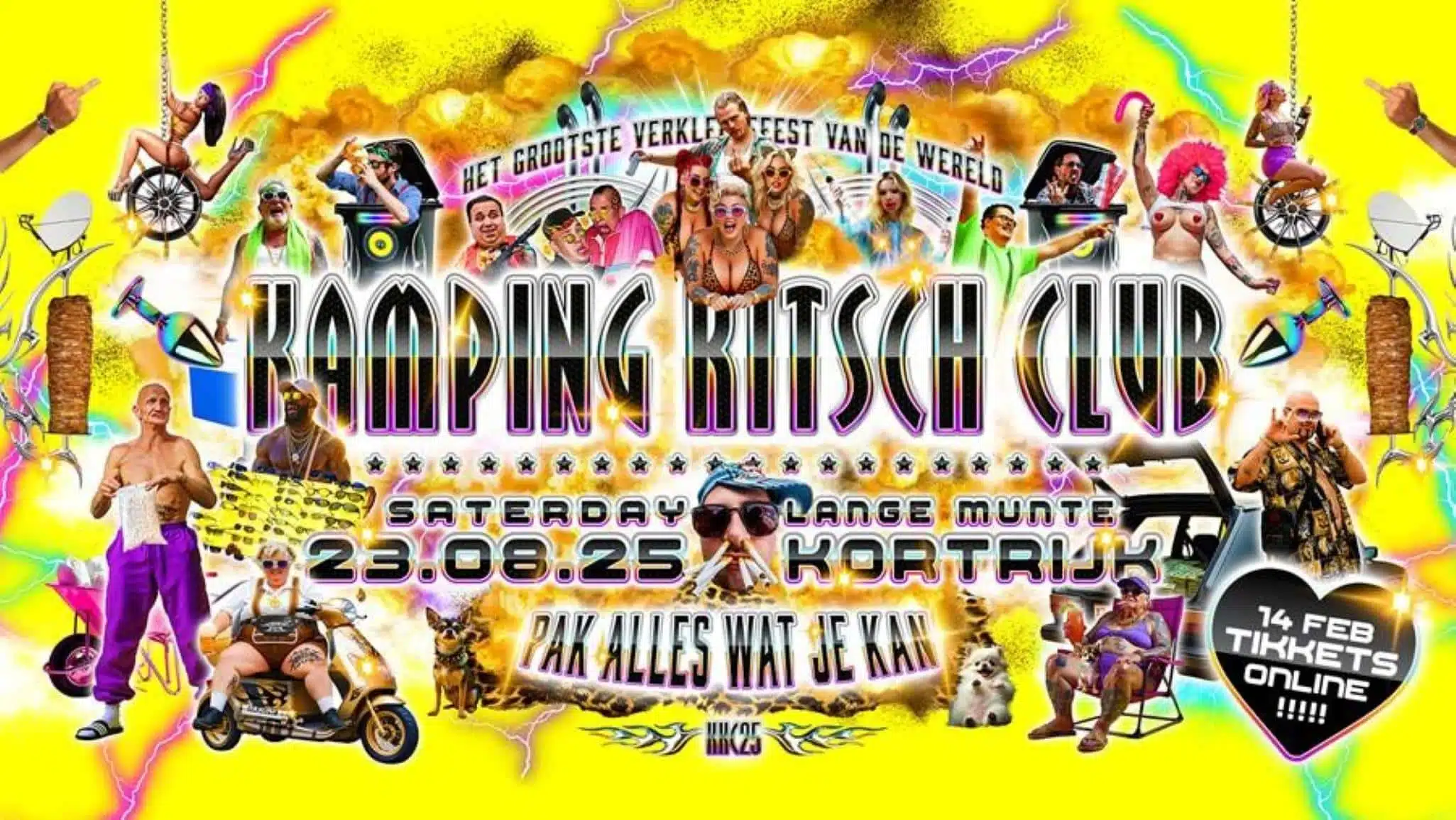 KORTRIJK – Op zaterdag 23 augustus kan je op de Lange Munte in Kortrijk terecht voor de ‘Pak alles wat je kan’-editie van Kamping Kitsch Club, ‘het vetste verkleedfeest ter wereld’ dat vorig jaar goed was voor 27.000 bezoekers. Dit jaar gaat de organisatie voor een recordeditie en met de aankondiging van De Planckaerts, Outsiders, Joyce De Troch, Wesley Sonck ft. Bram & Lennert en K3 als eerste namen, nam de ticketverkoop meteen een hoge vlucht.