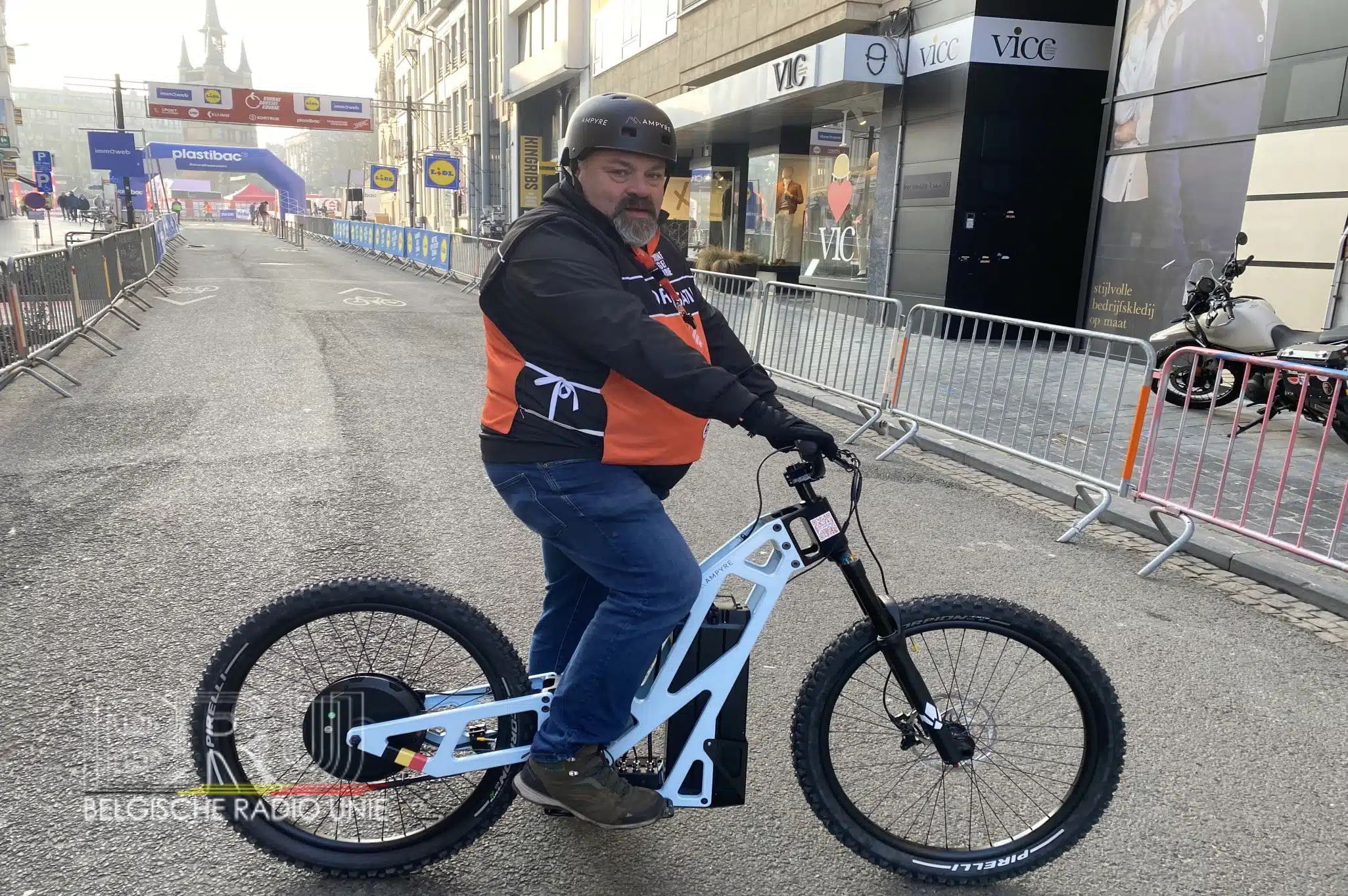 “Drie jonge ondernemers hebben deze Ampyre ontwikkeld en vroegen me of ik deze in de koers wilde gebruiken”, vertelt Rik, “Deze elektrische all-terrain scooter is alvast gemakkelijker hanteerbaar tijdens een wielerwedstrijd dan de elektrische step die ik vorig jaar gebruikte. Kabelgoten over de weg en boordstenen waren toen mijn grote vijand, maar met deze Ampyre is dit gelukkig geen probleem. Er was eveneens ook niet veel oefening nodig om met deze Ampyre aan de slag te gaan.” Ondanks Rik met veel plezier de Ampyre vandaag voor de eerste maal mocht uittesten tijdens Kuurne – Brussel – Kuurne blijft hij maar beperkt in zijn bezit. “Ik mag de Ampyre, voorzien van Belgische Vlag, gebruiken tot en met de Ronde van Vlaanderen, dan gaat hij terug naar de Belgische Wielrijdersbond.” Met deze ludieke en innovatieve aanpak lijkt Bossuyt opnieuw een traditie te creëren. De vraag is nu: met welk vervoersmiddel zal hij volgend jaar uitpakken?