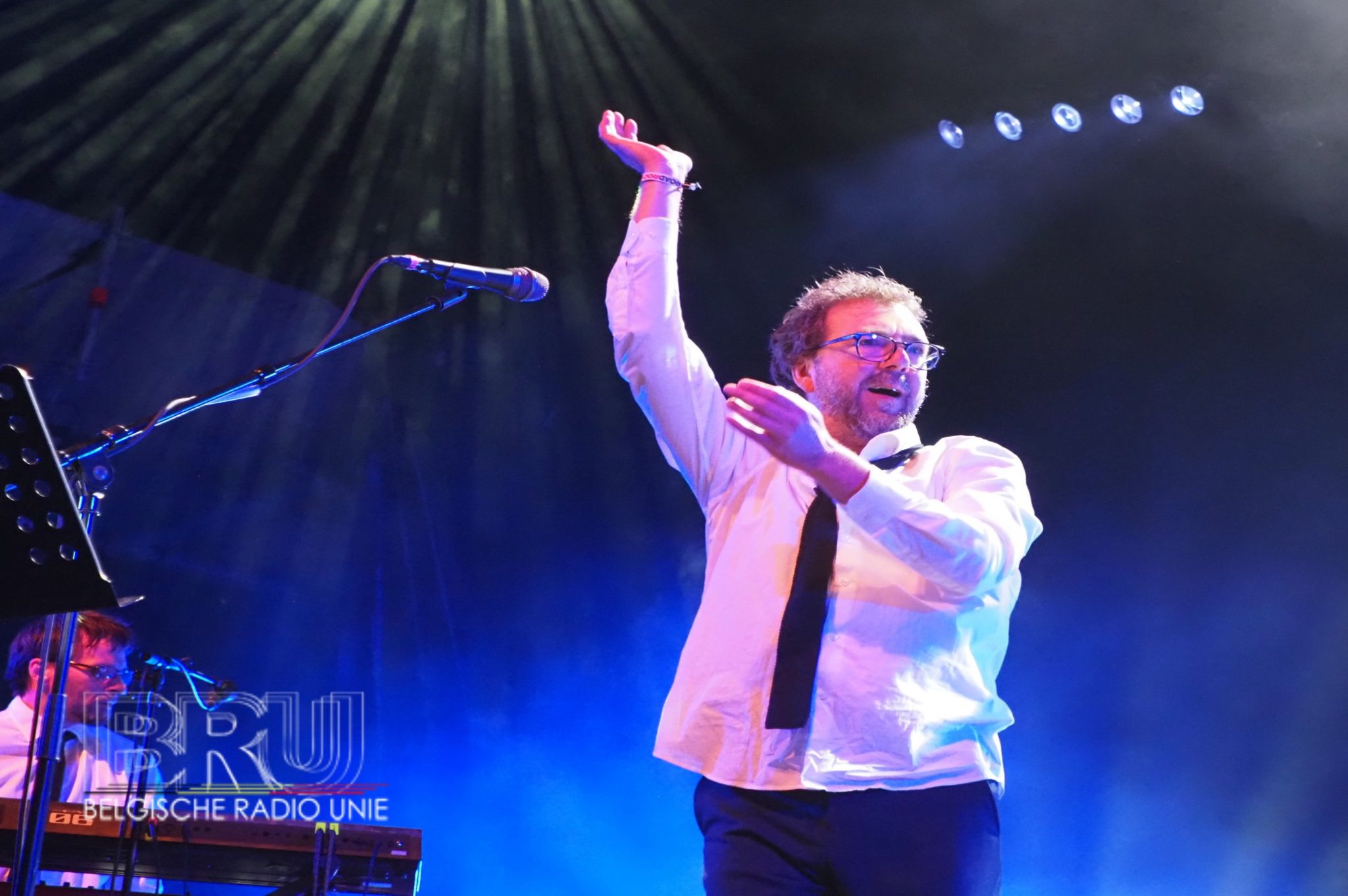 Toen Dave Evans zijn optreden als headliner aanvatte, gingen de hemelsluizen even open, maar dat kon de sfeer bij het aanwezige publiek niet bederven.  Gelukkig was de regenbui van korte duur en konden de aanwezigen verder droog van het festival genieten.