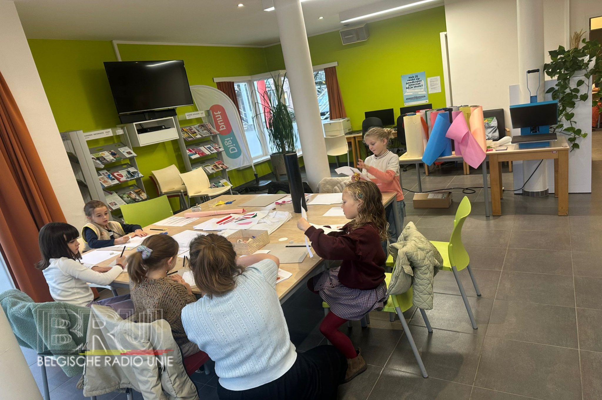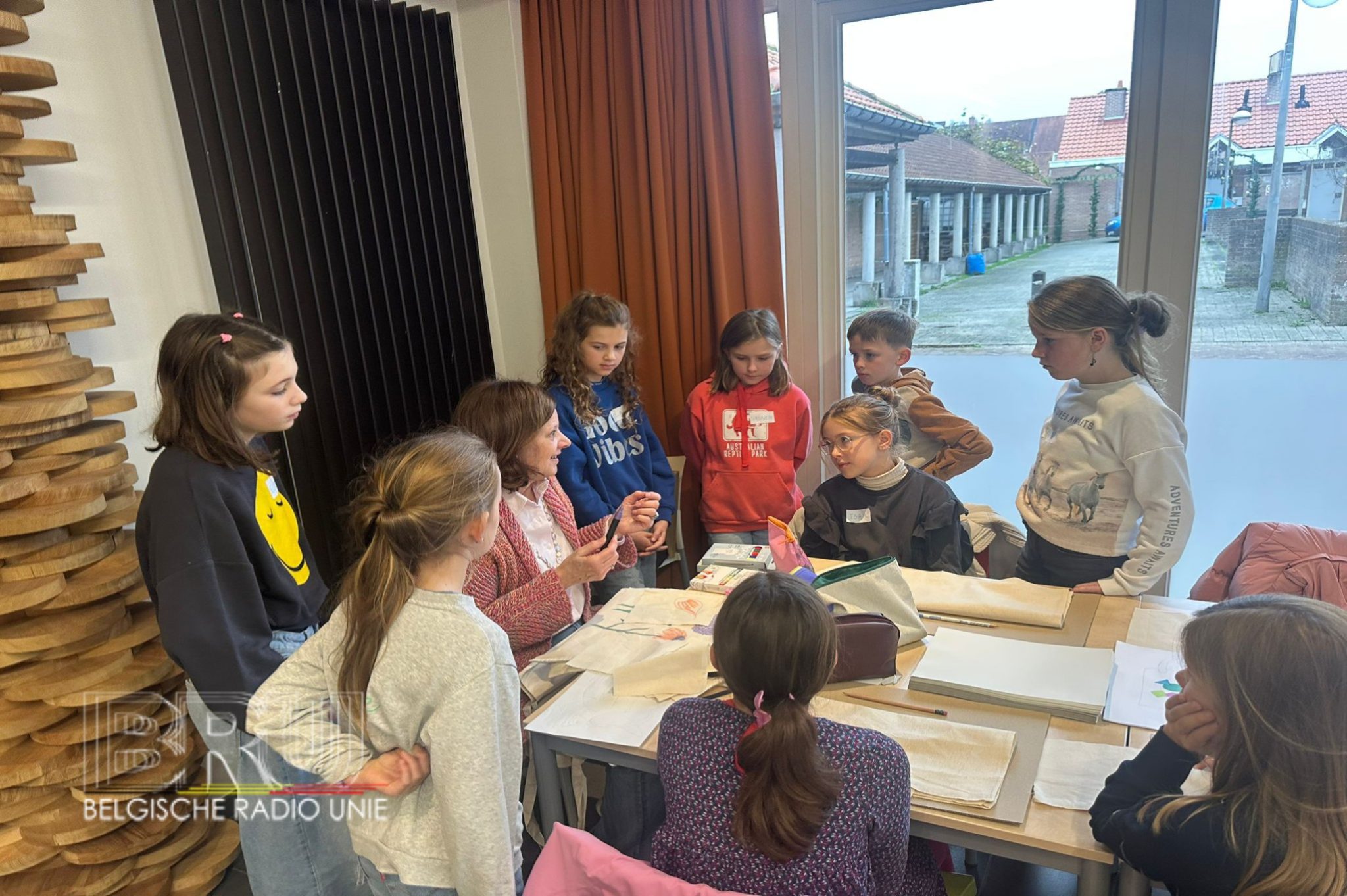 In de inkomhal van het gemeentelijk zwembad kregen kinderen de kans om tekeningen te maken op de ramen met verfstiften. Onder de titel Ramen vol verhalen werden ze daarbij deskundig begeleid door Eva Neirynck. Door het enthousiasme van de kinderen prijken nu diverse mooie kunstwerken op de ramen van het zwembad. Daarnaast waren er nog tal van andere workshops, waaronder Zoet en Kunstig met MamaMona, Pimp een draagtas, Naai je eigen ding!, kennismaken met muziekinstrumenten en Koken is een kunst om er maar enkele op te gaan noemen. Meer dan 50 begeleiders stonden de kinderen bij tijdens de diverse workshops zodat elke workshop een belevenis werd voor de deelnemers.