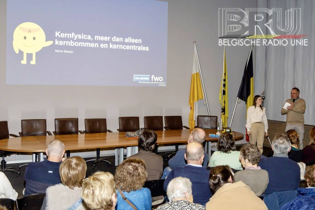 Marie Deseyn is doctoraatsstudente aan het instituut voor kern- en stralingsfysica in KU Leuven, waar ze onderzoek doet naar de productie en de straal van atoomkernen en wat we daaruit kunnen leren. Wie de lezing bijwoonde kwam niet alleen meer te weten over het universum, maar tevens ook over medische toepassingen waarin dit soort fysica wordt gebruikt.