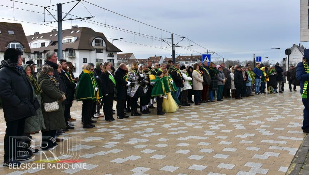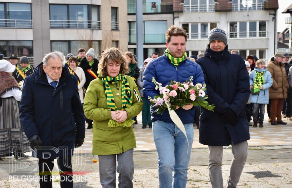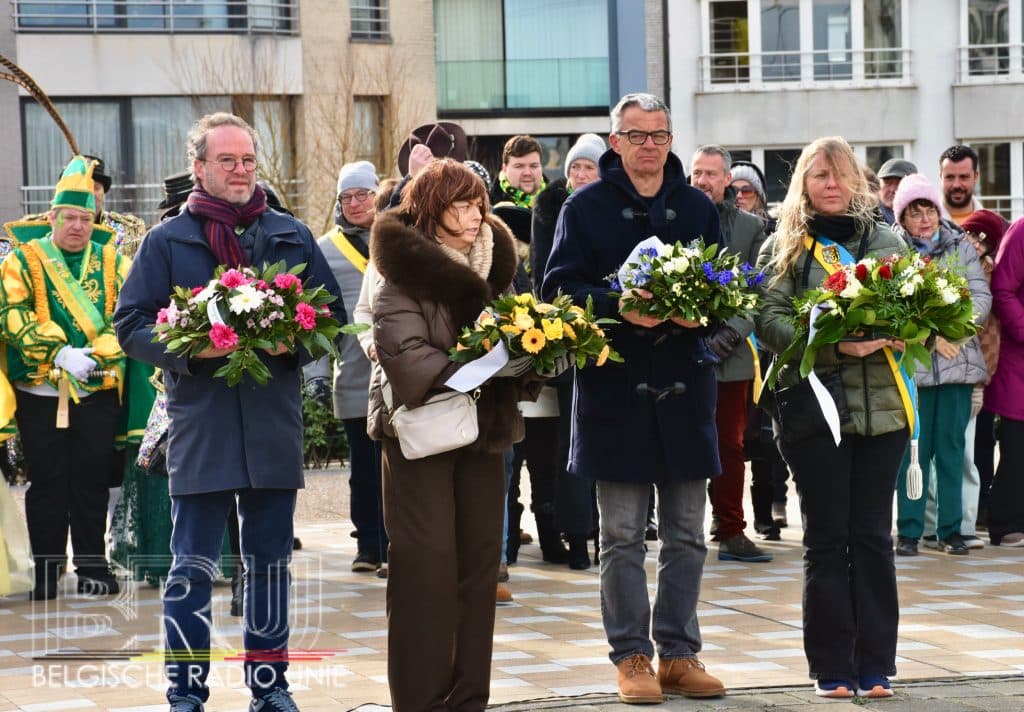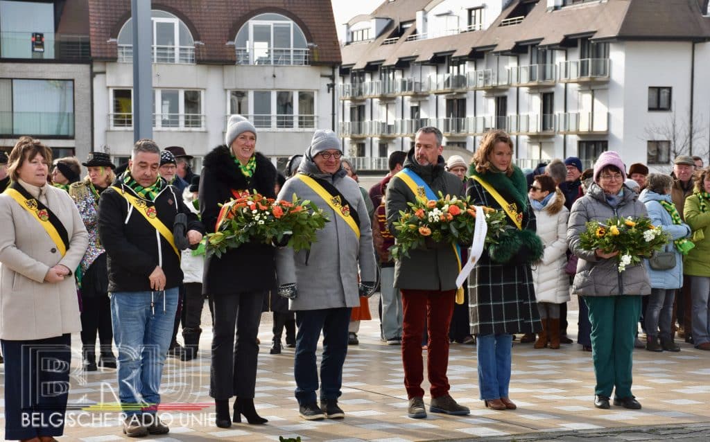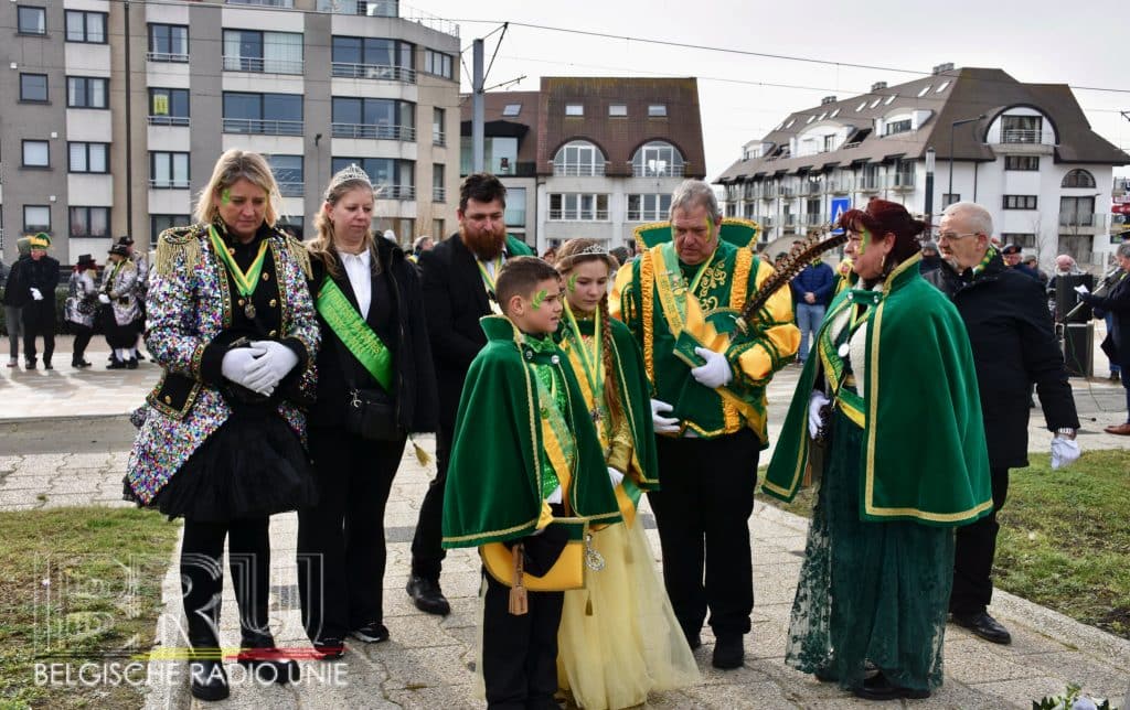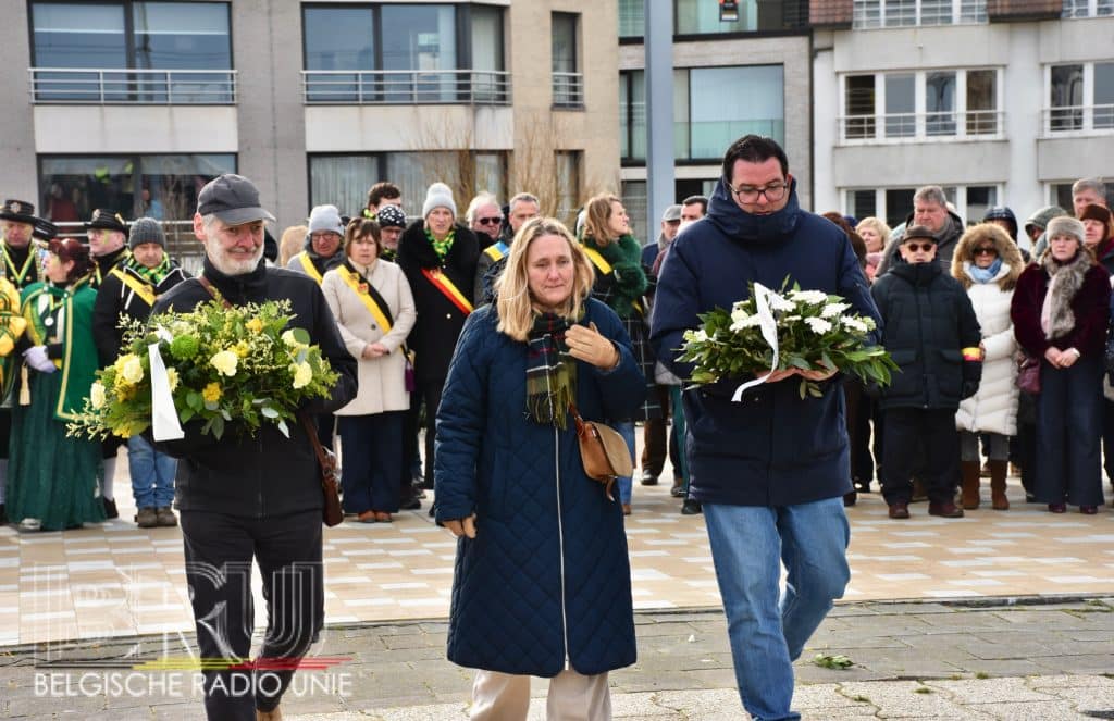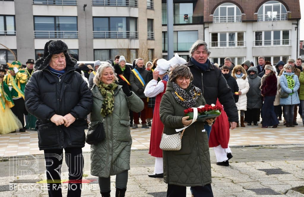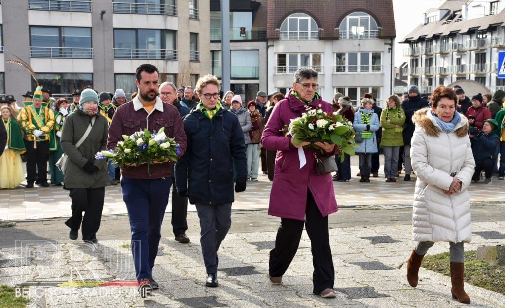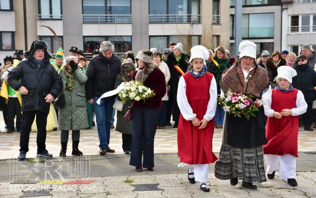 Na de vissersmis ging het richting het Vissershuldeplein, waar onder meer prins carnaval, zijn gevolg en nog meer genodigden, bloemen neerlegden ter ere van hen die door de zee werden verzwolgen.