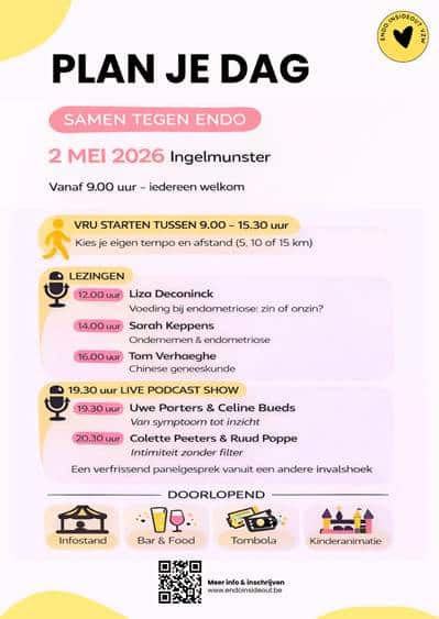 Initiatiefneemster Vaidi Plovie benadrukt het bredere doel van de dag: “Endometriose is geen randprobleem. Het is een chronische ziekte die duizenden levens beïnvloedt, elke dag opnieuw. Met ‘Samen tegen endo’ willen we mensen verbinden, taboes doorbreken en vooral tonen: niemand staat er alleen voor” besluit ze.