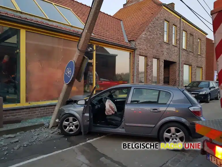 Wagen knalt tegen elektriciteitspaal te Zandvoorde